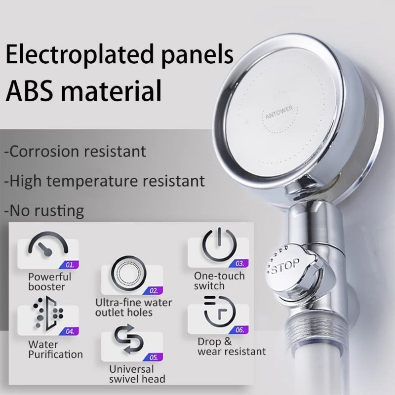 Material ABS de alta calidad: la carcasa de ducha está hecha de material ABS, y el proceso de fabricación especial hace que la carcasa sea altamente transparente. Al mismo tiempo, el diseño del ventilador turbo hace que la ducha sea más flexible e interesante. El patrón del cabezal de ducha es una verdadera obra de arte porque se forma a través del agua con tanta precisión que hace que parezca una obra de arte.