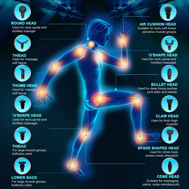 12 cabezales de masaje: masajeador muscular de tejido profundo Valano con 12 cabezales de repuesto, fácil y rápido de quitar y fijar cabezales de masaje en segundos, y es un diseño de mano que te permite alcanzar cada recuperación de entrenamiento muscular. Lo que te proporcionará una experiencia de masaje relajante diferente.