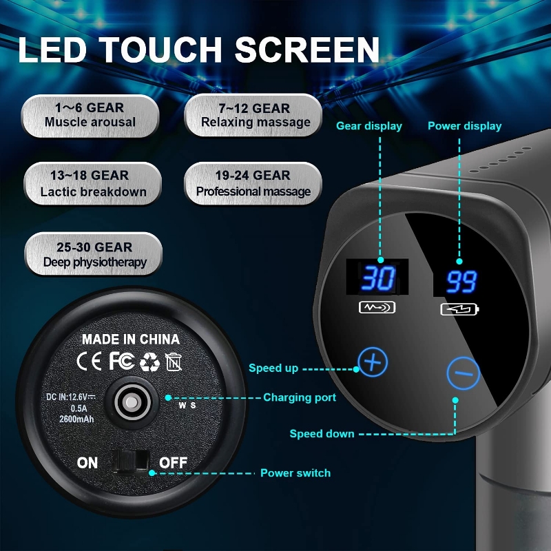 30 niveles de velocidad ajustables: la pistola de masaje manual Valano ofrece 30 niveles de velocidad diferentes de hasta 3200 rpm. Nuestra pistola de masaje de tejido profundo tiene una amplitud de 0.472 in, lo que permite que la percusión penetre profundamente en el tejido profundo.