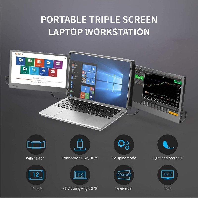 Obtén tu triple pantalla: conecta el monitor portátil Teamgee a tu laptop, obtén dos pantallas adicionales para tu trabajo diario. Teamgee se ha centrado en la tecnología de monitores portátiles durante más de cinco años. Nuestra misión es proporcionar las mejores soluciones para el espacio de trabajo multitarea y móvil.
