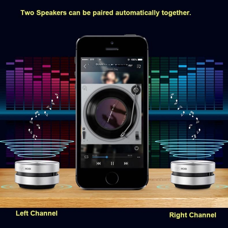 Altavoz de conducción ósea: es el altavoz Bluetooth más pequeño del mundo que puede convertir cualquier cosa en un altavoz. Te dará una experiencia de sonido de bricolaje, simplemente colócalo en diferentes superficies como caja de equipaje, guitarra, escritorio de madera, almohada, cajas de cartón. Diferentes superficies, diferentes efectos de sonido.